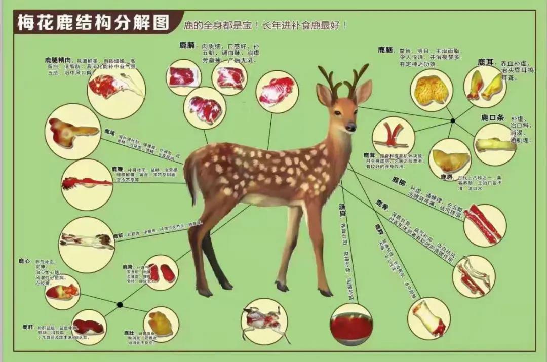 鹿是我國傳統的名貴藥用動物,漢代時就有“鹿身百寶”的說法,是靈丹妙藥的象征。《本草綱目》記載鹿茸、鹿角、鹿角膠、鹿角霜、鹿血、鹿腦、鹿尾、鹿腎、鹿筋、鹿脂、鹿肉、鹿頭肉、鹿骨、鹿齒、鹿髓等都可入藥...